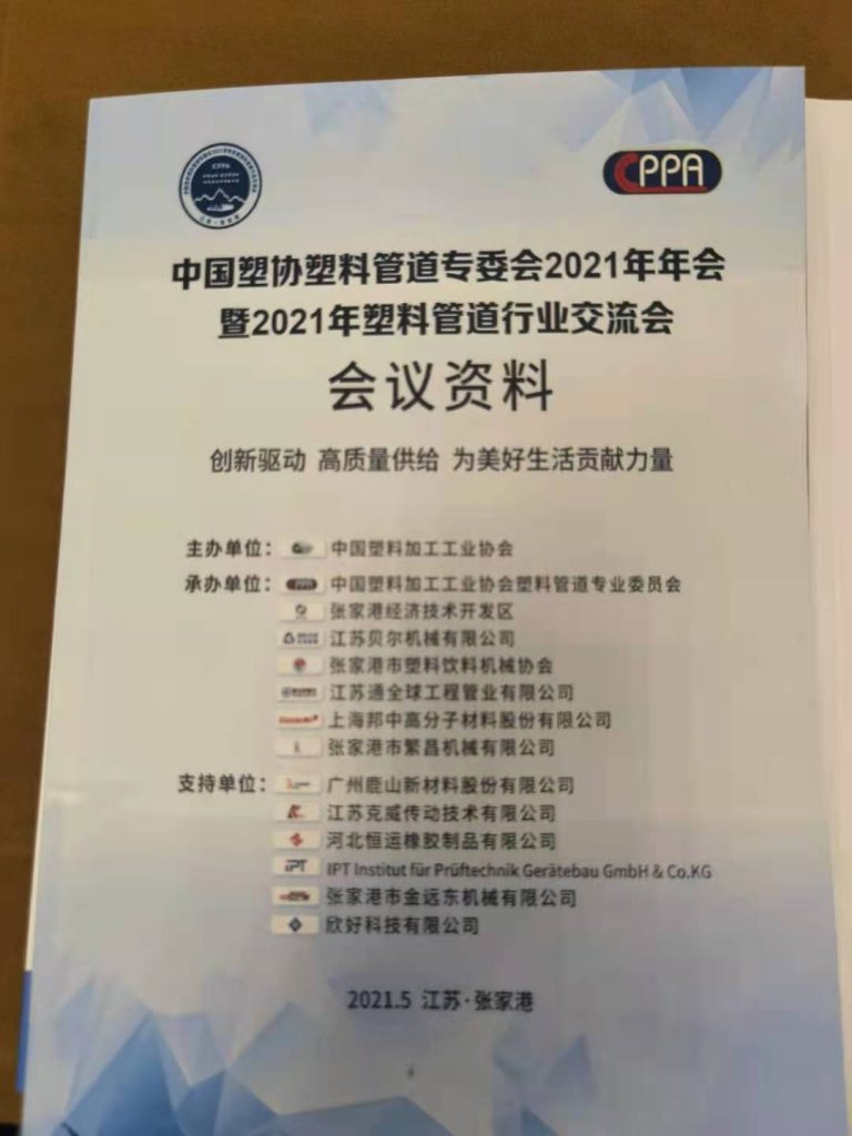 5月24日上午,中國(guó)塑協(xié)塑料管道專委會(huì)2021年年會(huì)暨2020年塑料管道行業(yè)交流會(huì)在江蘇省張家港市隆重開幕。